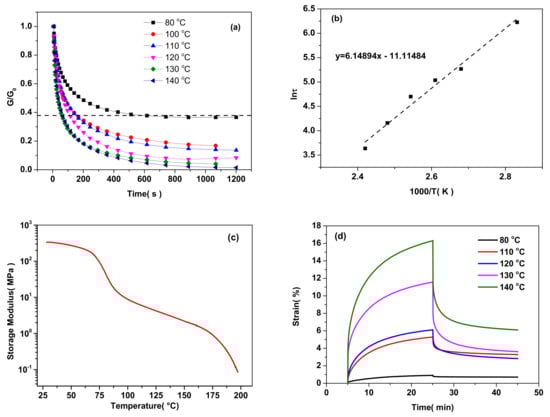 - Kuang, X.; Liu, G.; Dong, X.; Wang, D. Correlation between stress relaxation dynamics and thermochemistry for covalent adaptive networks polymers. Mater. Chem. Front. 2017, 2017 1, 111–118. [Google Scholar] [CrossRef]