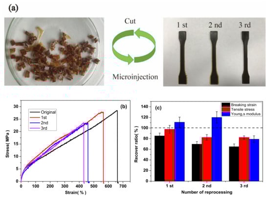 | Generation | Breaking Strain Recovery Ratio (%) | Tensile Stress Recovery Ratio (%) | Young’s Modulus Recovery Ratio (%) |