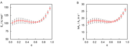 and p is the number of the temperature programs, T(t). The trapezoid rule was used to evaluate the integral. A minimum of Equation (1) was found by the COBYLA non-gradient method from the NLopt library. The uncertainties in the Eα values were determined by means of a statistical procedure explained elsewhere [26].