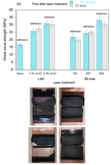 - Hernandez, E.; Alfano, M.; Lubineau, G.; Buttner, U. Improving adhesion of copper/epoxy joints by pulsed laser ablation. Int. J. Adhes. Adhes. 2015, 64, 23–32. [Google Scholar] [CrossRef][Green Version]