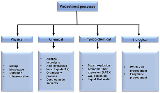 Flow chart diagram of pretreatment processes. Reprinted with permission from Baruah et al. Recent Trends in the Pretreatment of Lignocellulosic Biomass for Value-Added Products. Frontiers in Energy Research. Copyright (2018) Frontiers [28].