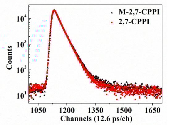 Positron lifetime spectra measured for the M-2,7-CPPI and 2,7-CPPI films.