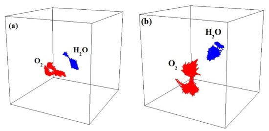 The representative trajectories of O2 and H2O in (a) 2,7-CPPI and (b) M-2,7-CPPI.