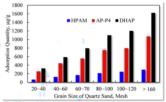 The influence of the quartz sand particle size on the polymer solution adsorption capacity is presented in Figure 12.
