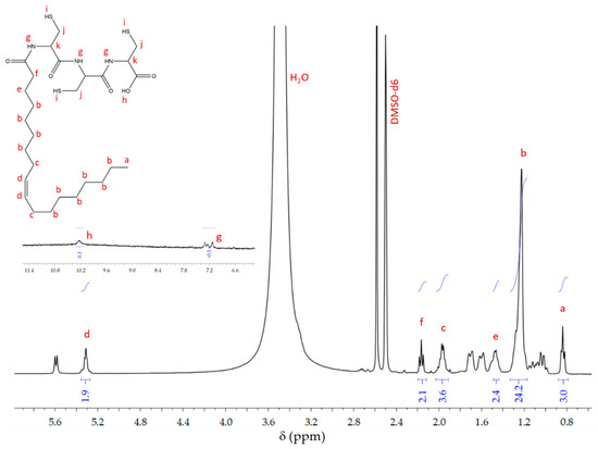 Chicago/Turabian StyleVizcarra-Pacheco, Marco, María Ley-Flores, Ana Mizrahim Matrecitos-Burruel, Ricardo López-Esparza, Daniel Fernández-Quiroz, Armando Lucero-Acuña, and Paul Zavala-Rivera. 2021. "Synthesis and Characterization of a Bioconjugate Based on Oleic Acid and L-Cysteine" Polymers 13, no. 11: 1791. https://doi.org/10.3390/polym13111791