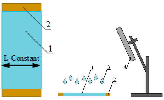 Schematics of model film samples preparation for DSC analysis. 1—film, 2—mandrel for fixing the film size along the shrinkage direction, 3—solvent, 4—air flow stimulator, 4—vacuum evacuation (not shown).