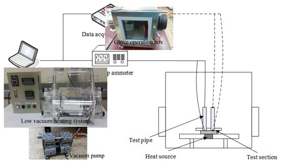 The experimental framework of the present study is shown in Figure 2. The low-vacuum heating system used in the experiment was manufactured by the thermal-fluid illumination laboratory of National Taiwan Ocean University (NTOU) from Keelung in Taiwan, for which the operating temperature was between 25 and 120 °C and the operating pressure was 300 to 760 torr. The novel TEP was fixed on the heating platform and the operation control panel regulated the time and heating temperature. The low-vacuum glove operation box was employed to fill the electrolytes into the novel TEP, which was from Hoyu Technology Co., Taipei, Taiwan. The oil-free vacuum pump was utilized for low vacuum pressure with a voltage of 100 to 115 V, a motor power of 560 W, and an exhaust speed of 100 l/min. Experimental temperatures were measured by the T-type copper-nickel thermocouples with a wire diameter of 0.32 mm, occupying a measuring range between –200 and 350 °C and an error range of ±0.5 °C. The data logger of the GL-800 was made by Graphtec Co., Yokohama, Japan, which had 40 measuring items containing temperature, voltage, and humidity, etc., with a sampling time of 0.1 ms and a measurement error of ±1%. In the present experiment, the temperature data of the thermocouple can be captured and recorded on the hard disk and output as a Microsoft Office Excel table. The digital electric meter of TM-8155 with the measurement accuracy of ± (0.05% reading + 5 digits) used in the experiment was produced by Twintex Instrument Co., New Taipei City, Taiwan, which had the functions of measuring voltage, current, resistance, capacitance, and so on. The generated power density of the novel TEP was determined by the TM-8155. Eventually, the maximum measuring error for the thermoelectric performances of the novel TEP device was thus within ± 3%.