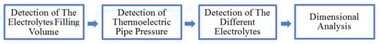 The performance test of the novel TEP was mainly divided into two parts. The first was to discuss the thermoelectric performance test of the novel TEP using the titanium dioxide nanofluid as the electrolyte under different filling amounts and pressures. Afterwards, the thermoelectric function test of four different electrolytes, including nanofluid, seawater, deionized water, and polymeric nanofluids, composed of nanoparticles added to sodium hydroxide filled into the novel TEP at different temperatures, was investigated. The experimental process of thermoelectric performance is shown in Figure 3.