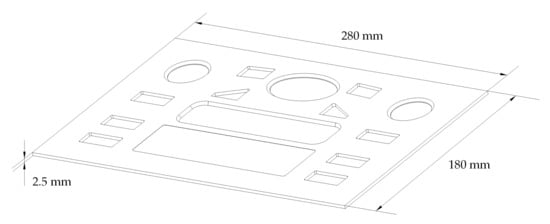 A semi-crystalline iPP (T30S, Zhenhai branch of Sinopec Corp, Ningbo, China) was used to mold parts. The parameters of the polymer were as follows: melt flow index (MFR) of 2.5 g/10 min, melting point of 167 °C, density of 0.91 g/cm3, and an isotactic index greater than 94%. An injection molding machine (MA3800/2250, Haitian International Holdings Ltd., Ningbo, China) was employed to produce CIM and RHCM parts with a size of 280 × 180 × 2.5 mm, as shown in Figure 2.
