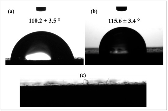 The water contact angle was evaluated using a drop shape analyzer (DSA30S- Kruss), and each reported value was the average of at least five measurements taken on different locations of the samples.