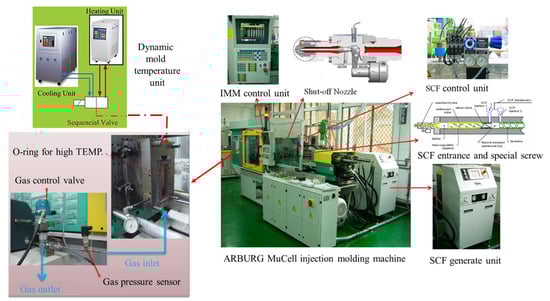 A schematic of MuCell injection molding Unit with a gas counter-pressure (GCP) regulation system and a dynamic mold temperature control system [24].