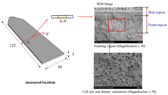 Measurement of the specimen at specified locations and the foaming bubble calculation of FE-SEM [26].