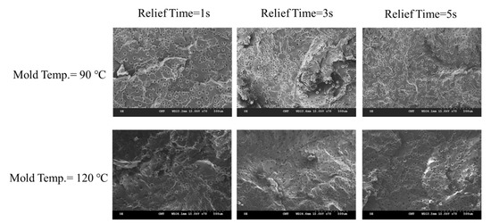 - Chen, S.C.; Hsu, P.S.; Hwang, S.S. The effects of gas counter pressure and mold temperature variation on the surface quality and morphology of the microcellular polystyrene foams. Appl. Polym. Sci. 2013, 127, 4769–4776. [Google Scholar] [CrossRef]