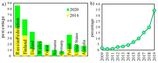 (a) Percentage of people in selected countries who use and buy drugs via the darknet in 2014 and 2020; (b) percentage of people buying drugs via the darknet for the first time [1].