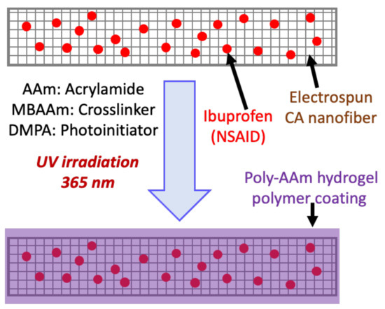 Chicago/Turabian StyleAttia, Mohamed F., Ahmed S. Montaser, Md Arifuzzaman, Megan Pitz, Khouloud Jlassi, Angela Alexander-Bryant, Stephen S. Kelly, Frank Alexis, and Daniel C. Whitehead. 2021. "In Situ Photopolymerization of Acrylamide Hydrogel to Coat Cellulose Acetate Nanofibers for Drug Delivery System" Polymers 13, no. 11: 1863. https://doi.org/10.3390/polym13111863