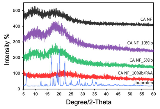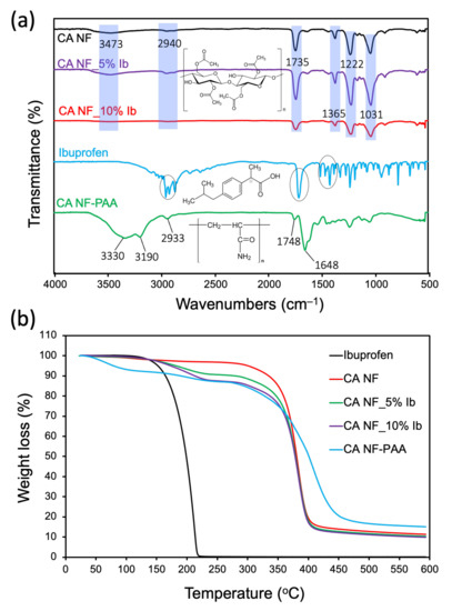 2.2. Preparation of Ibuprofen-Loaded CANFs and Coating with Hydrogel Polymer in Two Consecutive Steps