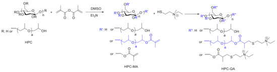 In this study, hydroxypropyl cellulose (HPC), a commercially available cellulose ether frequently used in biomedical applications, was selected as another example. The methacrylation were very similar to those used with dextran, and HPC-MA was also synthesized as another thiol-Michael addition substrate (Scheme 2).