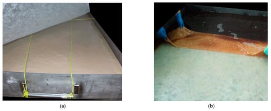 Molina-Ramírez et al. [25,26] described a 40-fold scale-up starting from a 90-cm3 glass vessel to a plastic container 62.5 cm long, 29 cm wide and 18.5 cm high; the culture medium volume was raised from 45 cm3 to 1800 cm3. The results were obtained using an alternative nutrient medium, i.e., overripe banana, and a Komagataeibacter medellinensis strain. The yield (in total volume, g/L) was 5 in the first case and 4 in the second; the dry weight (g) was 0.46 and 16, respectively. That said, those authors concluded that the quantity of the BNC obtained in the scale-up was 16 g, 3378% greater than that obtained in the glass vessel under optimized conditions. Following this logic, the quantity of the BNC obtained in the scale-up in our case was 16.24–17.04 kg, which is 173,504–182,051% greater than that obtained in the 0.1-L nutrient medium.