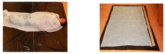 An adult wrapped in the BNC sheet (the ruler is 2 m long).