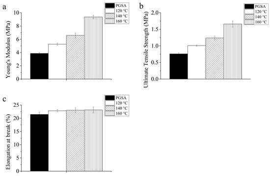 3.1. Mechanical Properties of PGSA after Thermal Treatment