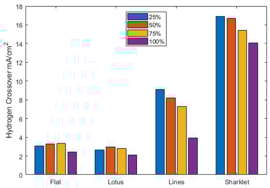 Figure 6. Hydrogen crossover for each pattern at different humidity levels.