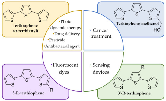 Vallan, L.; Istif, E.; Gómez, I.J.; Alegret, N.; Mantione, D. Thiophene-Based Trimers and Their Bioapplications: An Overview. Polymers 2021, 13, 1977. https://doi.org/10.3390/polym13121977