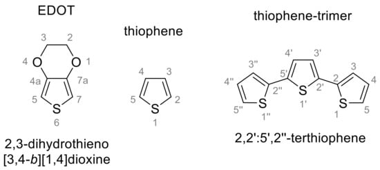 3.1. Unsubstituted EDOT-Containing Thiophene-Based Trimers