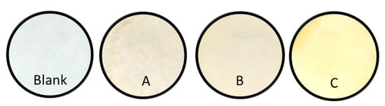 Membranes (filter disc coated with poly(ODA-co-PyMDA) (A), poly(ODA-co-PyMDA[Me])TFSI− (B), and poly(ODA-co-PyMDA[Et])TFSI− (C)).