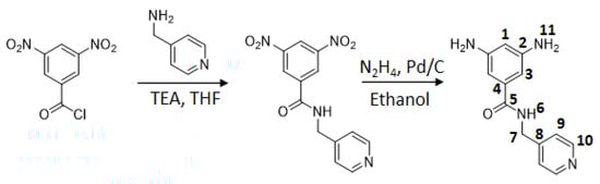 2.2.2. Synthesis of 3,5-diamino-N-(pyridin-4-ylmethyl)benzamide (PyMDA)