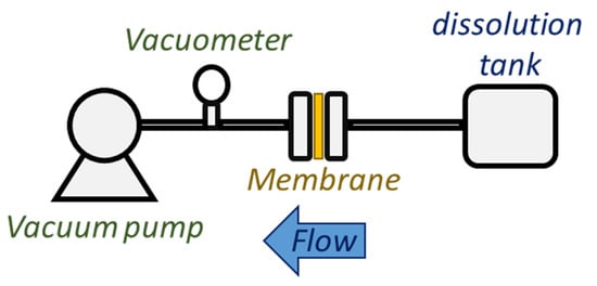 Tests were carried out using a transverse filtration system represented in Scheme 5. Briefly, 100 mL of NaCl solutions of two different concentrations (1000 and 2000 ppm) were passing through the above-mentioned membranes (Section 2.5.1) at 25 °C. The effective area of membranes was 9.62 cm2 while, depending on the case, two vacuum pressures (14 or 40 cmHg) were applied.
