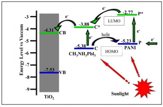 - Xiao, Y.; Han, G.; Chang, Y.; Zhou, H.; Li, M.; Li, Y. An all-solid-state perovskite-sensitized solar cell based on the dual function polyaniline as the sensitizer and p-type hole-transporting material. J. Power Sources 2014, 267, 1–8. [Google Scholar] [CrossRef]