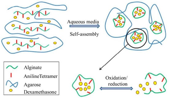 - Atoufi, Z.; Zarrintaj, P.; Motlagh, G.H.; Amiri, A.; Bagher, Z.; Kamrava, S.K. A novel bio electro active alginate-aniline tetramer/ agarose scaffold for tissue engineering: synthesis, characterization, drug release and cell culture study. J. Biomater. Sci. Polym. Ed. 2017, 28, 1617–1638. [Google Scholar] [CrossRef]