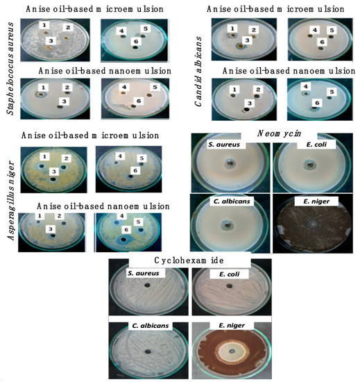 3.5. Determination of Antimicrobial Activity for Different Concentrations of Anise-Based Micro- and Nanoemulsion