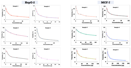 3.8. Cytotoxicity Activity of Different Concentrations of Anise Oil-Based Nanoemulsions Against Two Cell Lines, HepG2 and MCF7