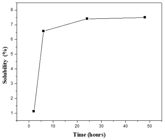 Solubility percentage of the prepared G/5BBG hydrogel nanocomposite with different time intervals.