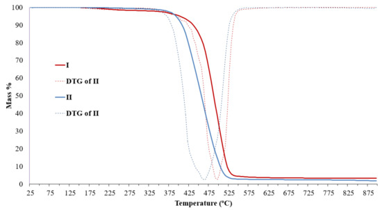 Attenuated total reflectance infrared spectroscopy (ATR-FTIR) was conducted on a Vertex 50 FTIR (Bruker, Billerica, MA, USA) with a universal attenuated total reflection (ATR) sampling accessory on a diamond crystal. Spectra of the different products from the synthesis were taken with 2 cm−1 resolution and 32 scans in the range of 4000–650 cm−1 at 25 °C.