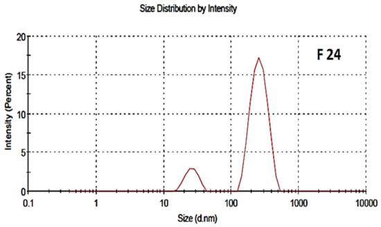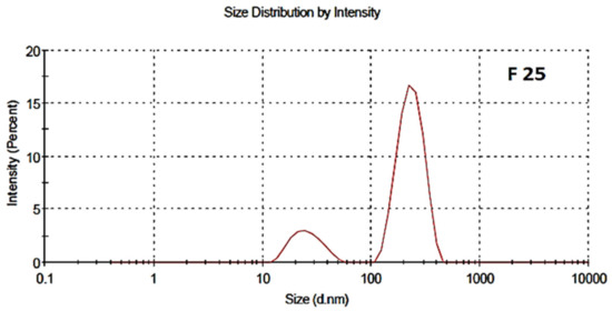 Particle size distribution of drug-Loaded polymeric NPs, F-25.