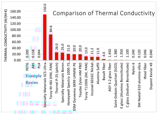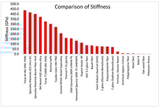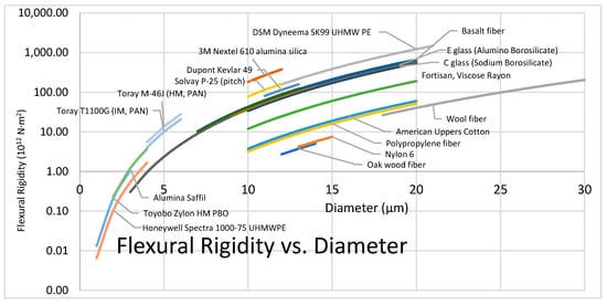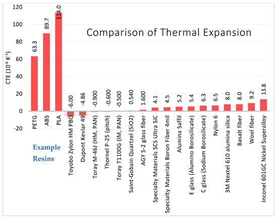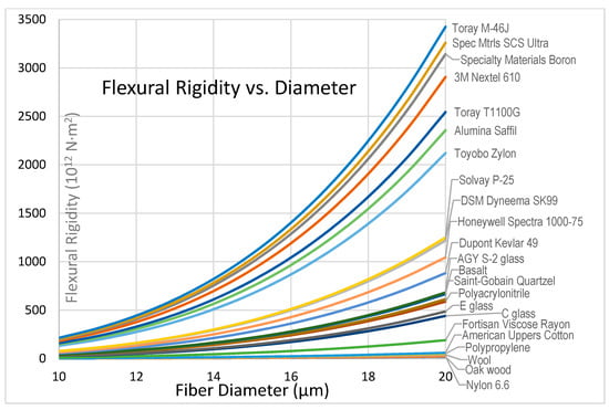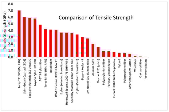 Throughout this review, fibers will be considered in terms of their usefulness in reinforcing polymeric matrix resins which are commonly used in additive manufacturing. There are currently many commercially available polymeric resins with short-cut reinforcing fibers, with several examples listed in Table 1 [3]. Carbon and glass fibers are the most common choice today, while Kevlar and basalt fibers have been printed as well [1,4]. However, there is an enormous range of fibers that could also be explored for inclusion in additive manufacturing materials. The U.S. Customs and Border Protection agency maintains a list of 1200 fiber trade names that represent 43 generic fiber categories, acknowledging that the list is neither exhaustive nor complete [5]. The purpose of this review is to survey all types of fibers and compare the mechanical and thermal characteristics of particular fibers in order to assist designers in the selection of reinforcing materials that might be appropriate for reinforcing fibers for FRAM.
