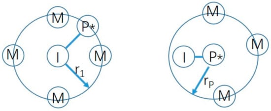 However, the influence of the entanglement/aggregation process of molecular chains in the solution phase in the early stage of the reaction has not been investigated, which is critical for revealing the mechanism in the molecular-level microscope. The main reason is that the size of molecules generated in the early stage of the reaction is very small, which is difficult to observe with current observation methods, and the chain growth process is extremely fast, which is difficult to research by sampling or in situ observation. However, MD simulation has great advantages in observing the small size and ultra-fast evolution process. It has been proved to be one of the most important tools to explore the mechanism in the field of self-assembly [,]. As to free radical polymerization, some researchers have recently used MD simulations to carry out related research [,,], using Reactive Molecular Dynamics (RMD) methods to simulate the initiation and growth of polymers. The center diagram symbolizes the formation of a new I–P* bond (as shown in Figure 1). The two different reactive processes are characterized by capture radii rI and rP. The reaction can take place whenever a free monomer bead M comes into the interaction sphere rI of an initiator I*or rP of a terminal reactive chain monomer P*. Torres et al. judged the termination of the reaction by introducing a gel point in the model []. Karim et al. studied the chain propagation process of styrene to monodisperse polystyrene in living polymerization []. Jiwon et al. further studied the molecular weight distribution of PMMA bulk polymerization and found that the simulated glass transition temperature and tensile modulus values were very close to the experimental results [], which proved the validation of the method on simulating molecular weight and distribution. The above simulation studies all focus on bulk polymerization. There are few literature reports on precipitation polymerization simulation.