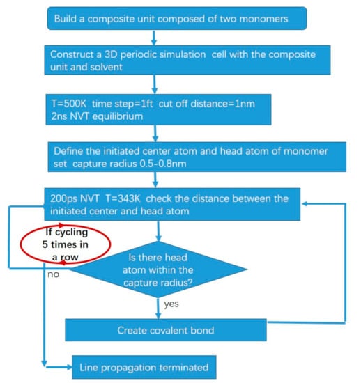 Scheme of molecular dynamics simulation algorithm for self-stable precipitation polymerization.