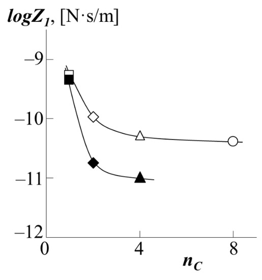 The conclusion about the contribution to the diffusion coefficient is also made possible by the information we obtained about the so-called reptational constant D 0 = k T Z , which has the meaning of the self-diffusion coefficient for a broken link system in which the monomer links are not linked in a chain (Figure 13).
