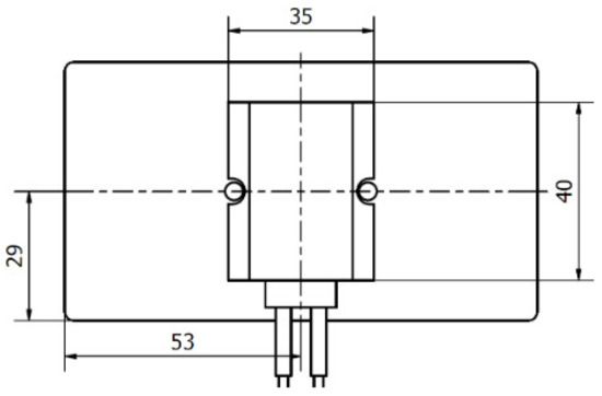 The heat leading to the heat sink was generated with a resistance heater. The contact surface area between the heat sink and the heater was 35 × 40 mm. The placement of the heater on the heat sink’s base is shown in Figure 5. A thermally conductive paste with a thermal conductivity of 4.2 W/m·K was applied between the heat source and the heat sink base. This paste ensured a good thermal contact, which was the same for every experiment.