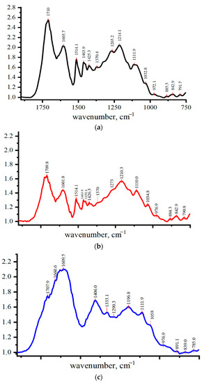 - Derkacheva, O.; Ishankhodzhaeva, M. Calculation of IR-Spectra of Structural Fragments of Lignins. EPJ Web Conf. 2016, 132, 3011. [Google Scholar] [CrossRef] [Green Version]