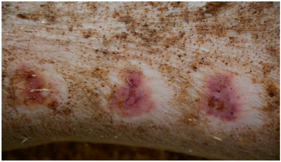 Escherichia coli grown in cultures taken from the healthy skin of pigs I and II was characterized by resistance to amoxicillin/clavulanic acid and trimethoprim/sulfamethoxazole.