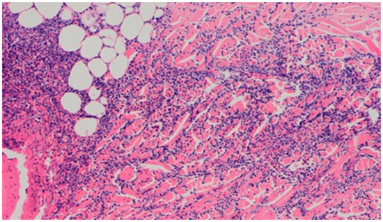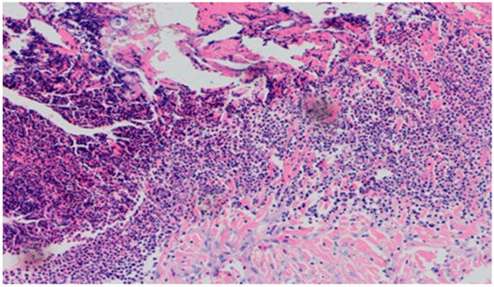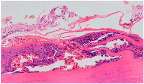 At the Department of Pathology of the Medical Faculty in Katowice, the Medical University of Silesia in Katowice, after prior dehydration of the sections with ethanol, acetone, and xylene, paraffin blocks were prepared, and then cut into 7-micron thick layers stained with hematoxylin and eosin. The preparations prepared in this way were viewed under a microscope at 40×, 100×, 200× and 400× magnification.
