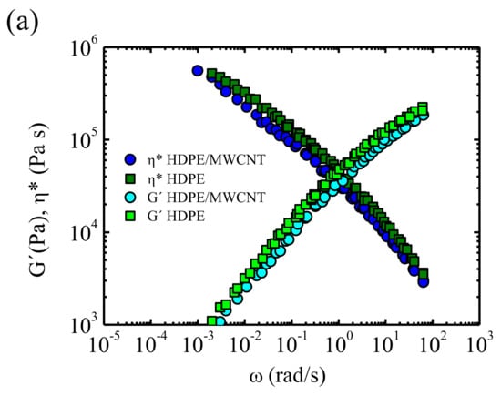 - Huegun, A.; Fernández, M.; Muñoz, M.E.; Santamaria, A. Rheological properties and electrical conductivity of irradiated MWCNT/PP nanocomposites. Compos. Sci. Technol. 2012, 72, 1602–1607. [Google Scholar] [CrossRef]