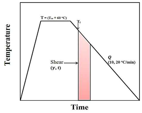 Schematic indication of thermal and shear treatment for crystallization process.