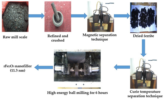 2.2. Synthesis of rFe2O3 Nanopartilces from Mill Scale
