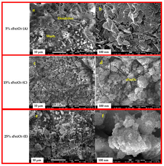 - Ang, B.; Yaacob, I.; Nurdin, I. Investigation of Fe2O3/SiO2 nanocomposite by FESEM and TEM. J. Nanomater. 2013, 2013, 980390. [Google Scholar] [CrossRef]