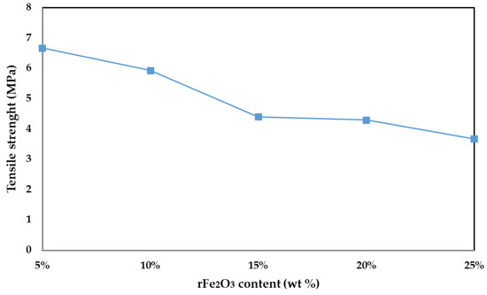 3.3. Tensile Strength and Density of rFe2O3–PTFE Nanocomposites